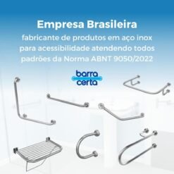 A barra fixa para vaso sanitário é produzida de acordo com às normas ABNT 9050/2004. A saber, lei nacional de acessibilidade. Ela é fabricada com um apoio adicional, formando assim, uma mão francesa. Ela garante maior segurança, pois não correrá o risco de ser arrancada da parede. Por esse motivo é muito importante informar o lado em que a barra ficará instalada.